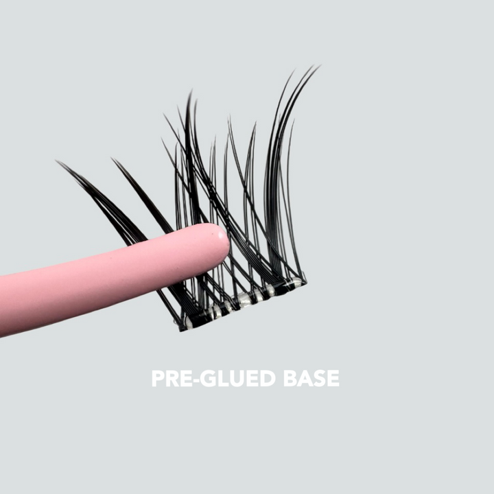 Our innovative pre-glued clusters deliver a seamless, secure hold without the need for adhesives. Just pick, press, and place beneath your natural lashes for effortless, salon-quality results in seconds.