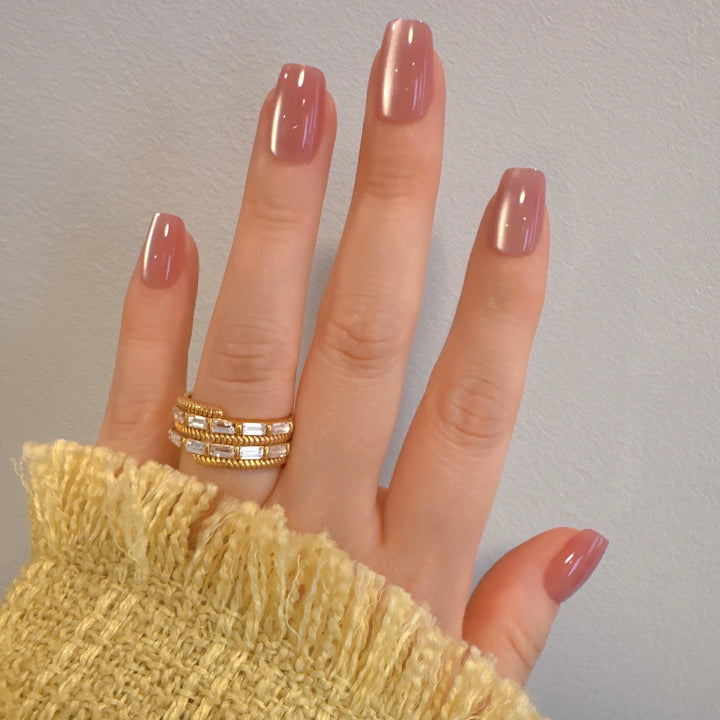 Timeless and delicate, Heirloom Pink features a vintage rose hue with a soft cat eye shimmer for added depth and elegance. The short squoval shape offers a clean, flattering fit that’s perfect for everyday wear with a hint of nostalgic charm.