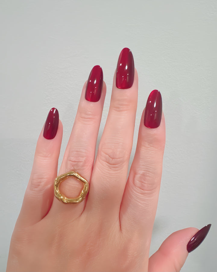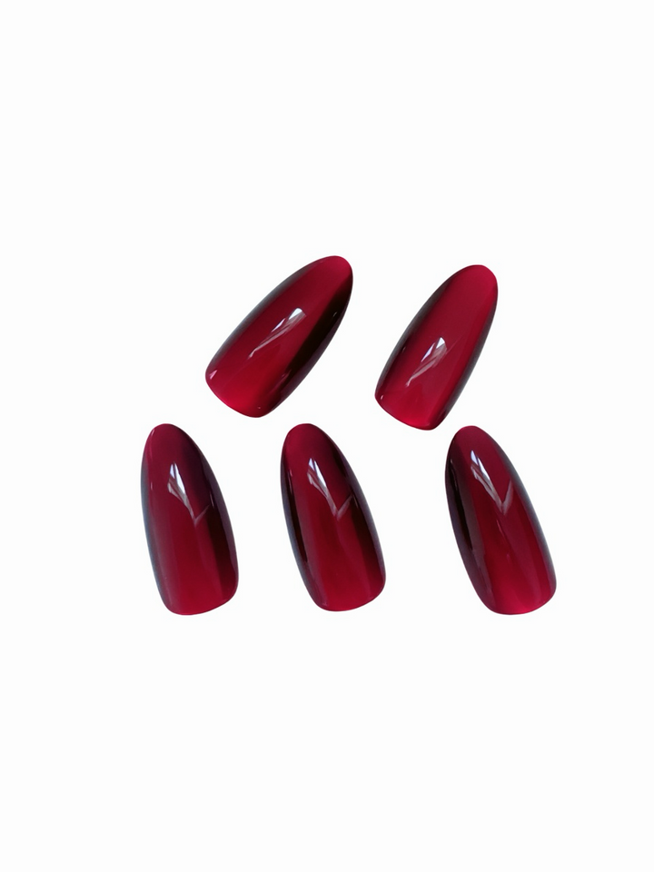 Elevate your nail game with these stunning ruby red medium length almond-shaped press-on nails! Perfectly shaped and reusable, these nails are designed to give you a chic look in no time. Whether you're heading to a party or just want to add a pop of color to your everyday style, these nails are a must-have accessory. Easy to apply and remove, they make nail art effortless and fun!